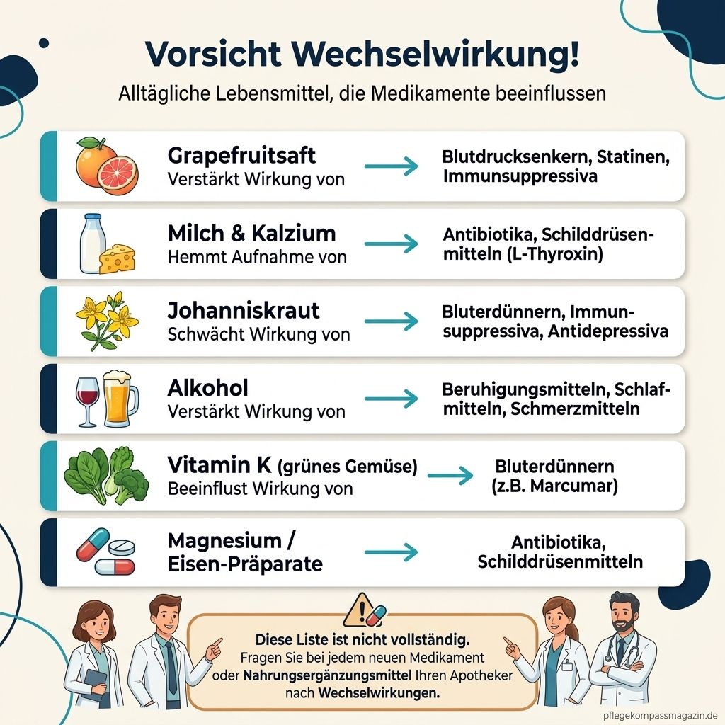 Praxis-Tipp: Bitten Sie Ihren Apotheker um einen Medikamenten-Check. Viele Apotheken bieten eine kostenlose Wechselwirkungs-Prüfung an, wenn Sie alle Medikamente – auch freiverkäufliche und Nahrungsergänzungsmittel – einmal mitbringen. Das dauert 15 Minuten und kann Probleme aufdecken, die niemand auf dem Schirm hatte.