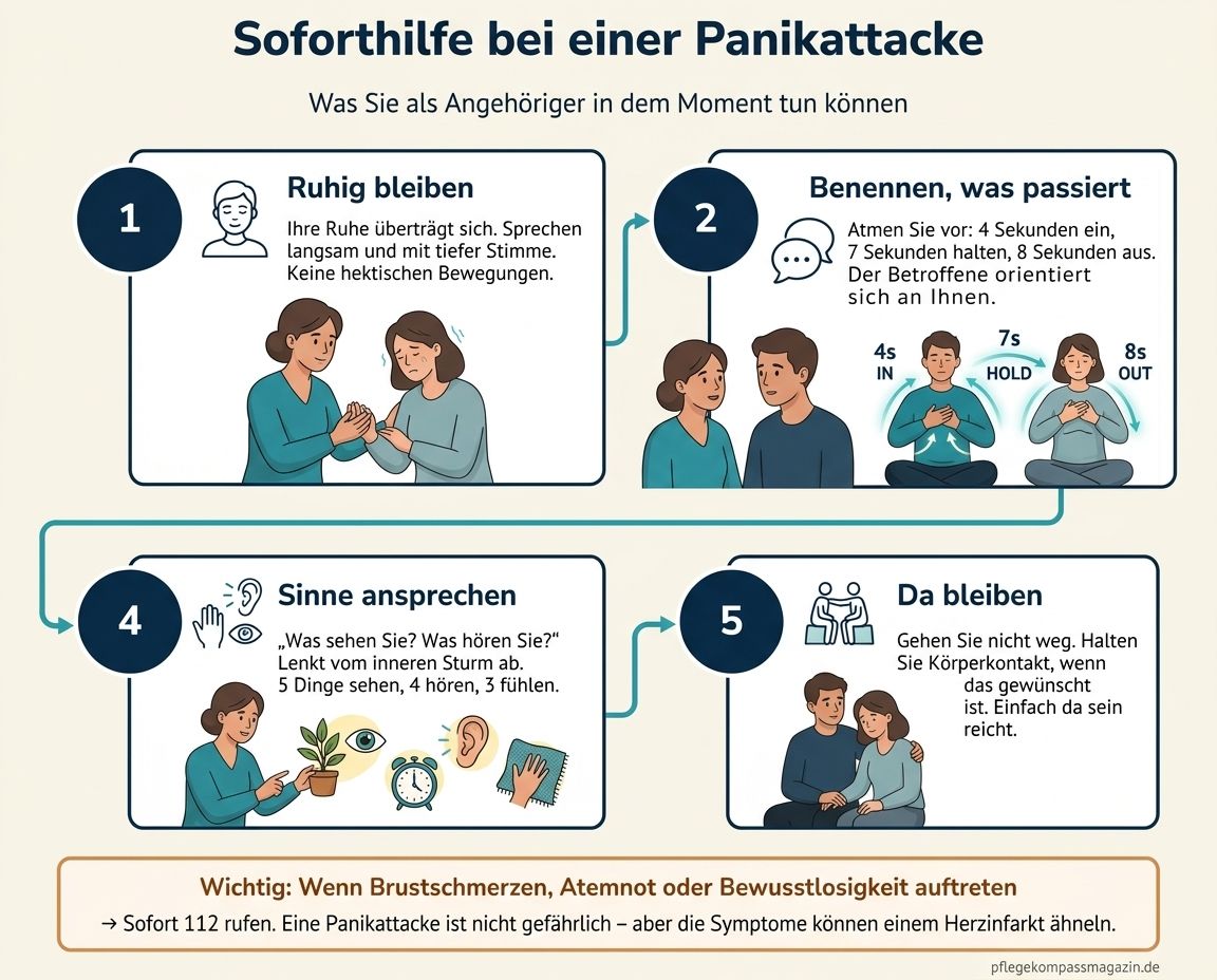 Infografik: Soforthilfe bei einer Panikattacke – pflegekompassmagazin.de